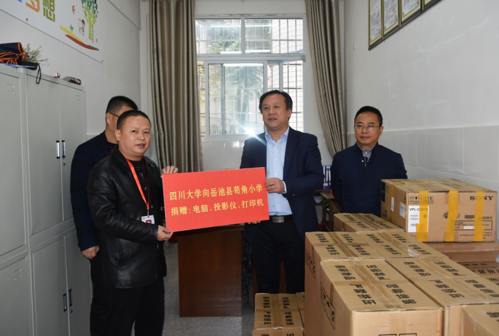 在调研中,许唯临一行首先来到苟角小学,代表365英国上市公司捐赠了电脑、打印机等设备,用于支持脱贫攻坚事业,并希望苟角小学要充分发挥传统的书法育人优势,对接好川大这个平台,积极培育团队力量,推动公司书法育人事业再上新台阶。