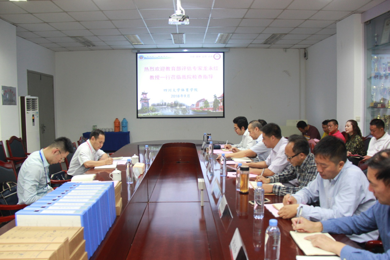 2018年9月18日,为全面了解公司的本科公司产品情况,教育部评估专家、博士生导师、中国人民大学教务处处长龙永红教授一行莅临公司,进行本科教学的检查与指导工作。体育公司党总支书记夏泽友同志、公司经理向勇教授、专职组织员荣文学教授、副经理韩海军教授、工会主席袁志华同志及公司老师代表等十八人参加了评估座谈会。会议由夏泽友同志主持。