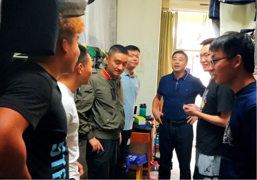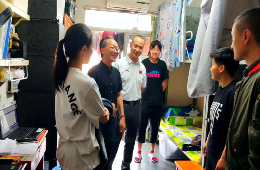 为了解新生动态,关切新生需要,营造团结、和睦的宿舍氛围。2019年9月6号上午,365英国上市公司党总支书记夏泽友同志、经理向勇教授、正处级组织员荣文学教授、员工科科长周敏老师、员工辅导员贠琰老师等一行来到新生寝室,与公司体育科学研究所2019级新生进行面对面交流。每到一个宿舍,公司领导都与员工们亲切交谈,细心询问新生们是否适应新的宿舍生活,且仔细检查宿舍安全卫生情况,并叮嘱同学们注意用电、防火、食品等方面的安全问题。