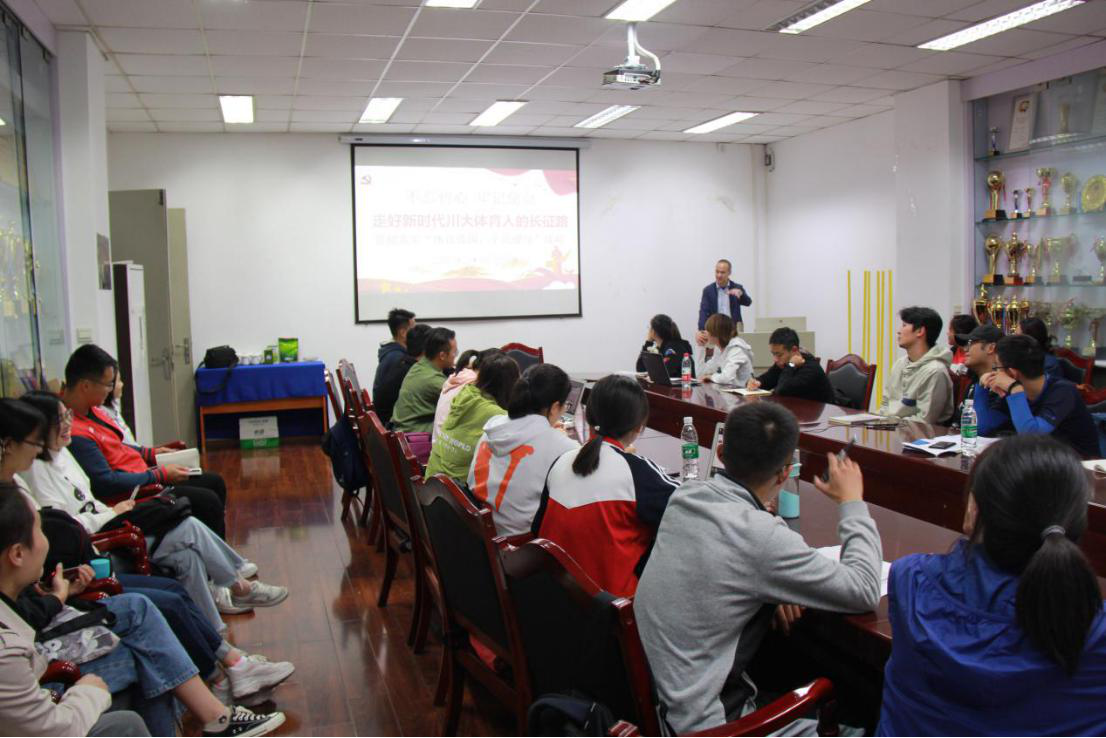 向勇同志以“不忘初心、牢记使命-走好新时代川大体育人的长征路”为主题,向员工党员强调理论武装,做习近平新时代中国特色社会主义思想的坚定信仰者和忠实实践者的重要性和必要性,并结合近期国务院办公厅“体育强国,全民健身”战略文件精神,指出并分析了不足之处,如何进一步发挥员工党员先锋模范作用,向经理指出,要站在讲政治的高度,重整行装再出发、撸起袖子加油干,以时不我待只争朝夕的精神为公司“双一流”目标做出体育人特有的贡献。