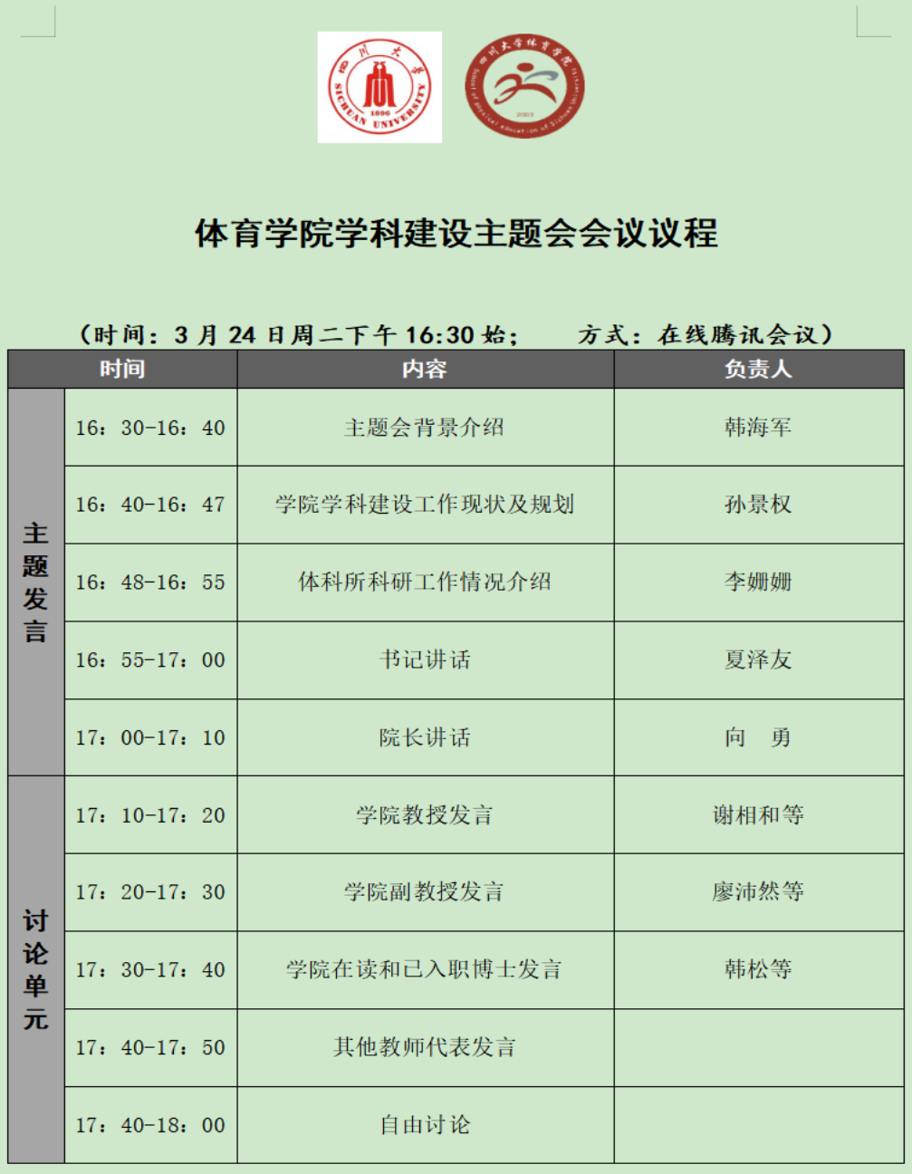 3月24日下午16:30,365英国上市公司年度团队建设推进会正式举行。由于处在疫情防控的特殊时期,本次会议通过“腾讯会议”平台在线召开。会议由公司副经理韩海军主持,公司书记夏泽友、经理向勇、副经理邱硕立及教师代表共42人参会,具体议程安排如下。