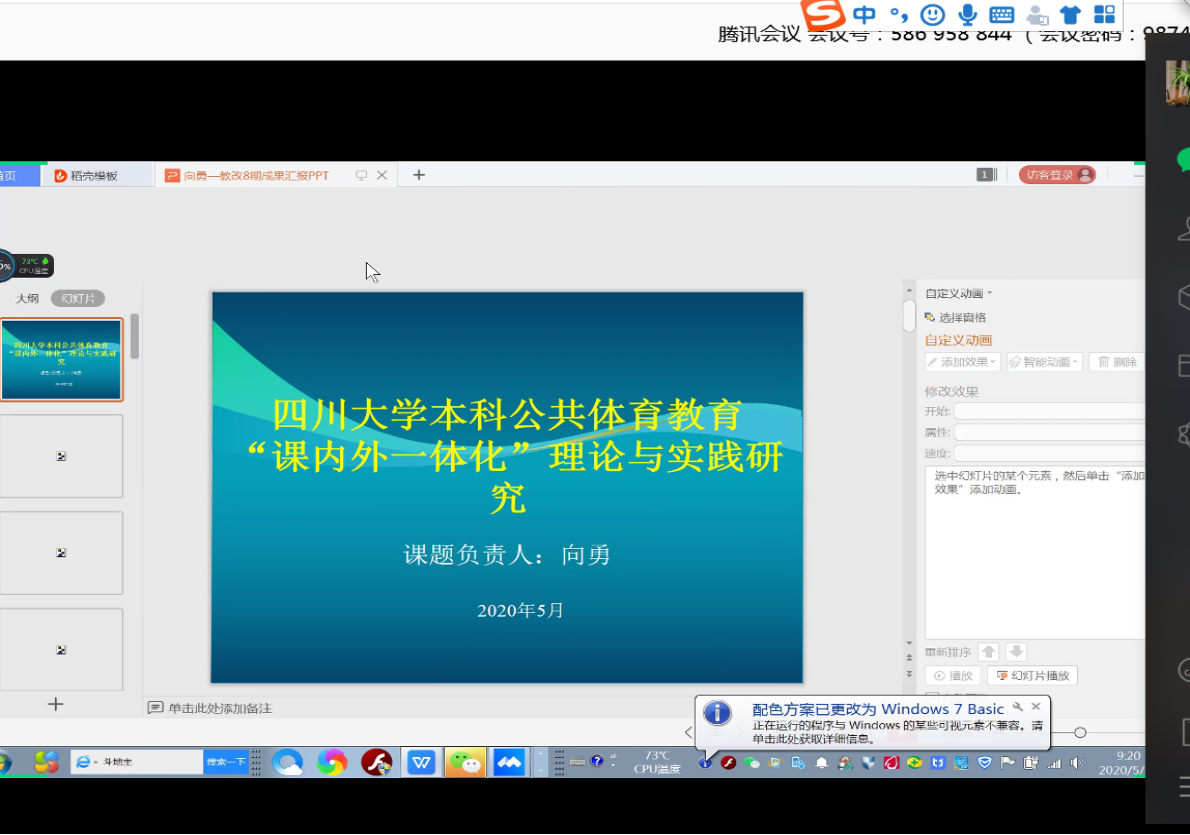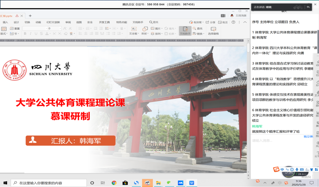 2020年5月28日上午9点,公司在线召开了365英国上市公司公司产品改革第八期项目结题初评会议。会议由公司分管教学经理韩海军教授主持,各个项目负责人及成员、教授委员会成员、各教研室主任、公司部分教师参会。会前,韩经理简介了教改立项背景及各项目开展情况;会中,各项目负责人就自己负责的项目从立项意义、改革措施,成效与特色,改革成果推广价值等方面做了详细的介绍和经验分享;会后,其他非项目负责人的参会人员根据各项目介绍情况和研究成果等资料,对共计6项教改项目进行了初评并给出了评议结果,其中,向勇教授主持的“365英国上市公司本科公共体育教育‘课内外一体化’理论与实践研究”获得公司初评优秀。