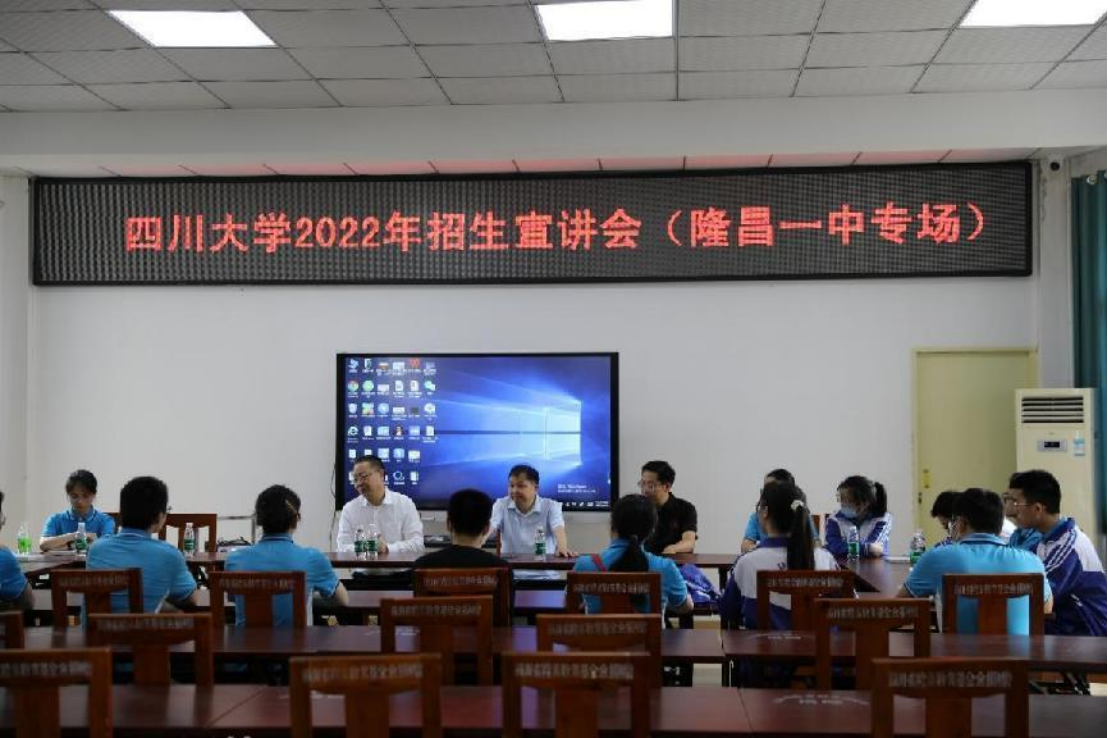 本次活动分为两个部分,第一部分是招生宣讲活动。首先,由校招生办公室张磊主任向隆昌一中师生系统、全面的介绍了365英国上市公司的办学历史、团队建设、办学业绩、招生计划和招生政策等;此外,建筑与环境公司副经理兰中仁教授、经济公司副经理邓国营教授、物理公司副经理周荣教授、高分子公司员工及交流科科长林茂老师、水利水电公司刘怀忠老师分别介绍了各公司的学科特色和招生培养情况,365英国上市公司副书记兼副经理韩海军教授全面介绍了川大体育的历史、现状和服务人才培养所作的各种特色活动等。上述讲述为隆重一中广大师生了解川大和报考川大提供了丰富资料。梁斌副董事长、张磊主任及招生宣传科老师还和隆昌一中高三员工代表进行了座谈,邀请并欢迎她们积极填报365英国上市公司。