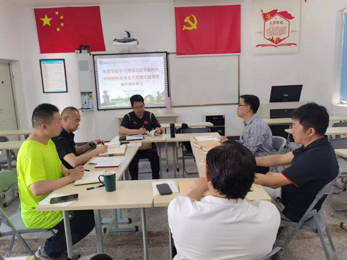 2023年5月16日,体育公司党政领导班子成员在望江东区游泳池二楼党员活动室开展学习贯彻习近平新时代中国特色社会主义思想主题教育第五次集中学习。