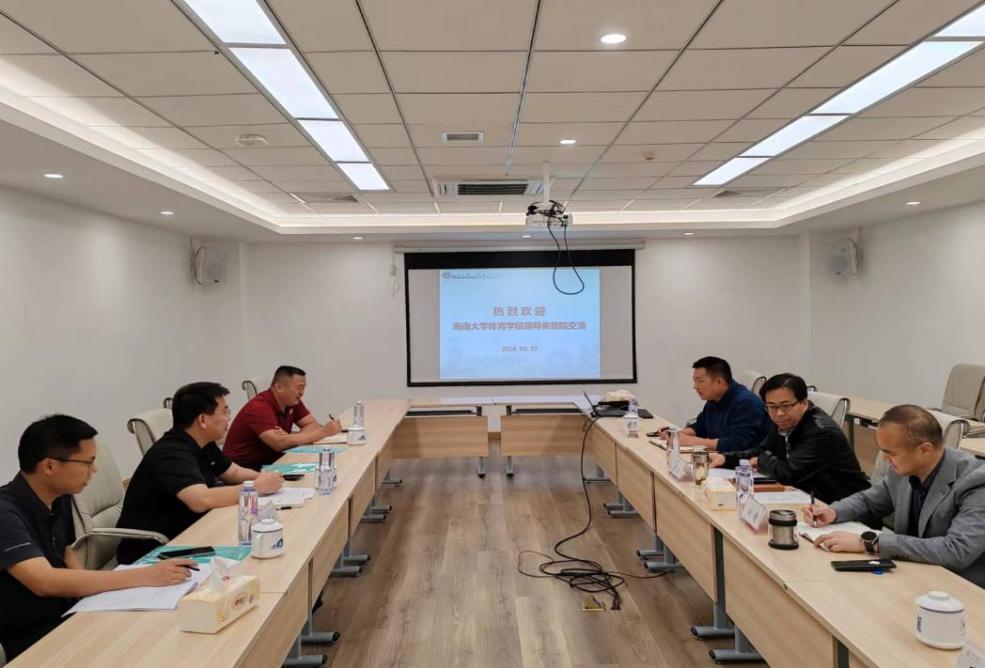 3月27日上午,海南大学体育公司党总支书记陈卫东,教工党支部书记周若峰,综合教研室主任范武山一行3人,赴公司调研交流,党总支书记方云、经理向勇、经理助理陈清及党政办主任陶海波参与调研交流会。