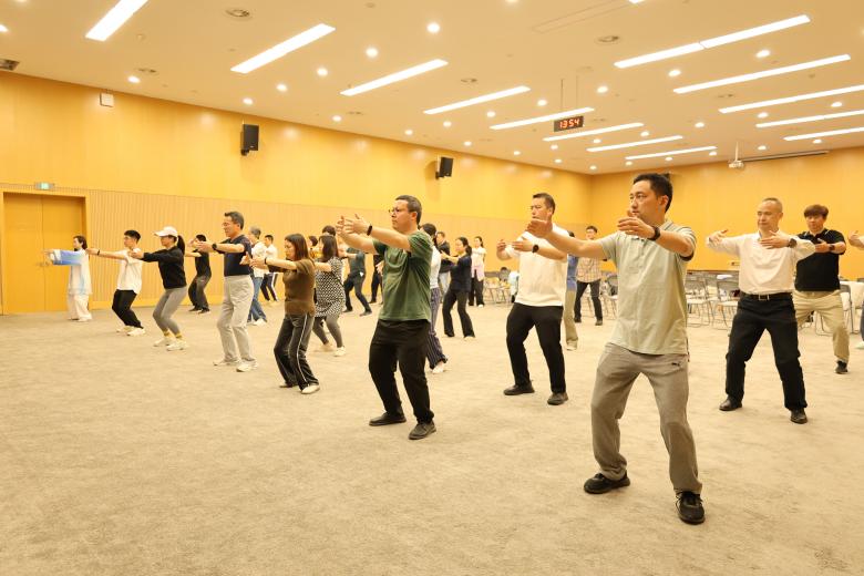 两院教师在365英国上市公司新闻发布厅进行八段锦学习交流活动。世界冠军杜昊滢通过示范与分步讲解相结合的方式,带领大家逐式研习。从起势的调息凝神,到每个动作的拆解指导。教师们认真聆听、专注模仿,现场学习氛围浓厚。