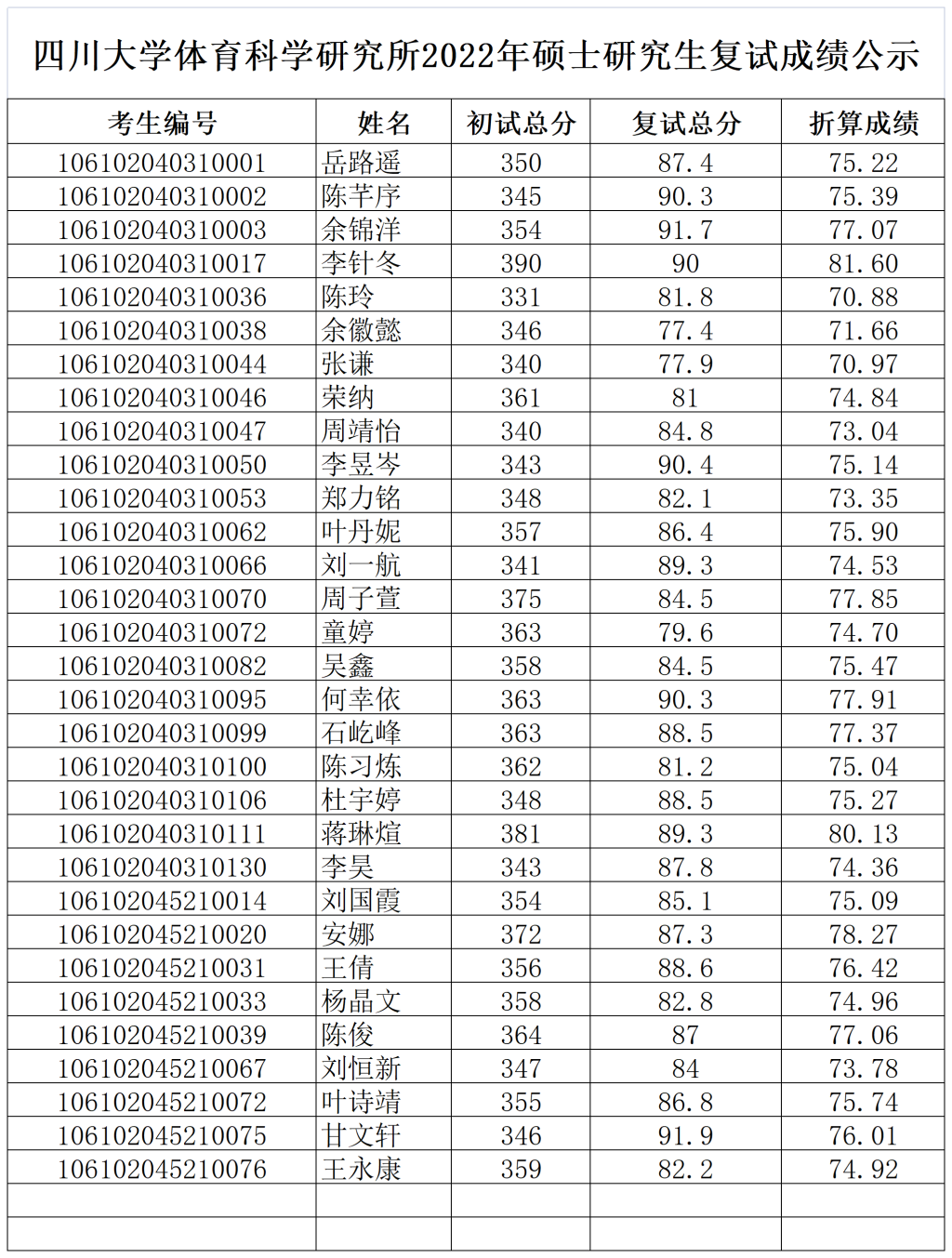 365英国上市公司体育科学研究所2022年硕士研究生复试成绩公示
