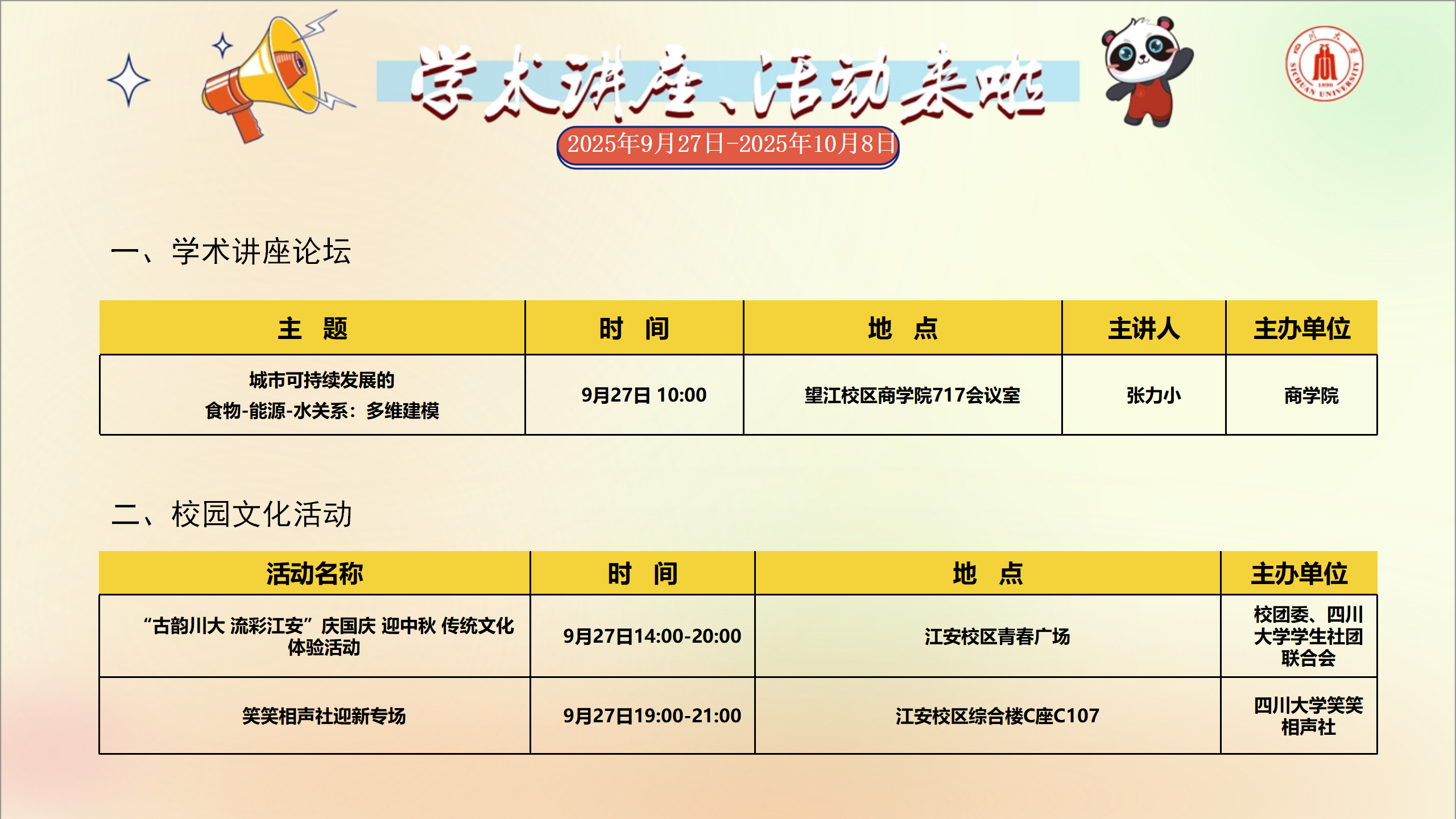 学术讲座及校园活动文化预告(9月27日-10月8日)