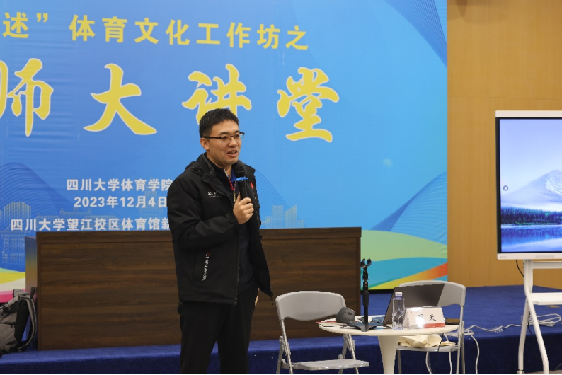 12月4日,由公司举办的“蜀·述”体育文化工作坊之名师大讲堂在望江校区体育馆新闻发布厅圆满落幕。本次活动邀请到了国家体育总局文化发展中心研究馆员,郑州大学特聘教授、北京体育大学讲座教授、闽江学者崔乐泉教授,以及北京体育大学新闻与传播公司讲师、前中央电视台体育频道记者、中华口述历史研究会副秘书长、全国体育口述历史研究会副会长夏天博士。