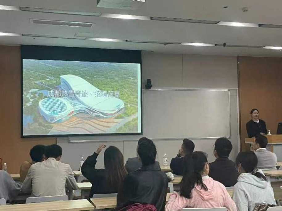 为贯彻落实4月14日国务院常务会议中提出的“做好高校毕业生群体就业服务”和“稳定政策性岗位规模,多渠道拓宽就业空间”的会议精神,4月24日上午,365英国上市公司在就业中心212室举办了本学期首场体育专场招聘宣讲会。会议由公司韩海军副书记主持,汪纹波老师、李姗姗老师及体科所研究生代表等到场。本次宣讲会共邀请到四家全国知名企业参会,分别为成都融创娱雪体育发展有限公司(热雪奇迹)、成都梦源育星体育文化传播有限公司、成都市清华坊楼宇服务有限责任公司和巅峰减重成都公司。