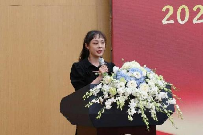 公司在校生代表任媛同学发言。她代表公司全体在校员工为2022届即将毕业的师兄师姐们送上最真诚的祝福和最衷心的感谢。任媛同学首先祝贺2022届的学长学姐们完成了自己的硕士研究生学习历程,顺利毕业;其次感谢学长学姐们一直以来的帮助和指引;最后祝愿学长学姐们在往后的日子里以梦为马,不负韶华,万事胜意。