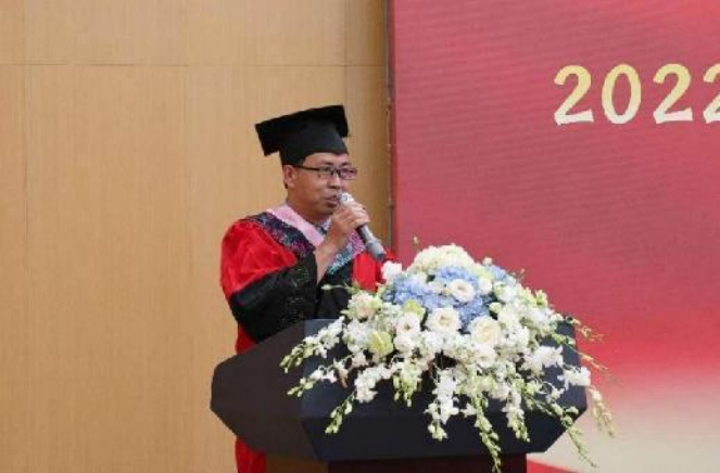 公司经理向勇教授发表了毕业致辞。向经理对2022届50名毕业生致以最诚挚的祝贺和最美好的祝愿,对辛勤耕耘的老师们致以最诚挚的问候,对含辛茹苦的家长们致以最亲切的慰问。向经理指出:2022届是“不走运的”一届,也是“很幸运的”一届;是“艰难的”一代,也是“蓬勃的”一代;是“幸福的”一代,也应该是“有为的”一代。一段旅程即将结束,新的旅程即将开始,向经理嘱咐毕业生同学们:待人要真诚,遇事要平和,从业要踏实。