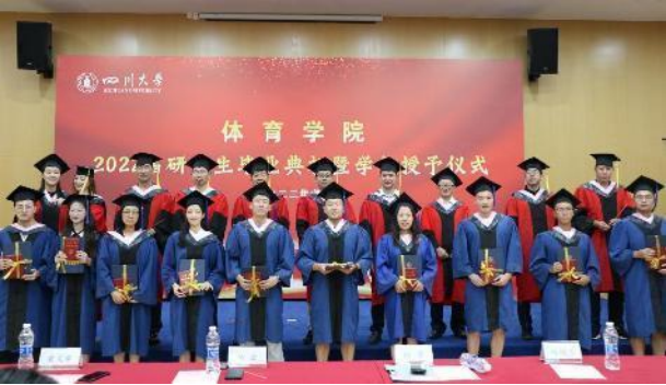 2022年6月21日下午,2022届员工毕业典礼暨学位授予仪式在望江校区体育馆新闻发布厅隆重举行。公司党总支书记方云同志、经理向勇教授、正处级组织员荣文学教授、副经理韩海军教授、邱硕立教授、工会主席袁志华副教授、导师代表谢相和教授、张晓波教授、陈清副教授、韩松副教授、教师代表李霞、周建新、周湉、汪纹波、贠琰、杨昆等出席了毕业典礼。毕业典礼由体育科学研究所常务副所长李姗姗教授主持。