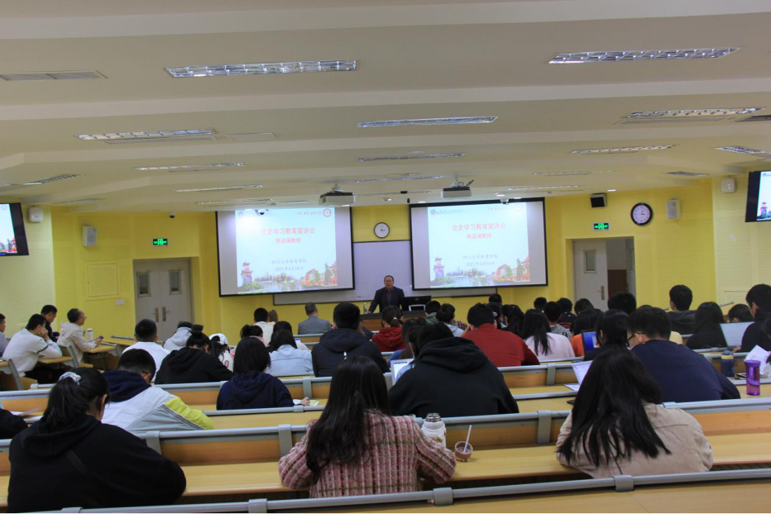 4月14日下午,公司宣讲团成员陈廷湘教授在望江研究生院104会议室作了题为“辉煌的历史与辉煌的未来一一谈谈中国共产党百年发展史的基本规律与总体趋向”的党史教育宣讲报告。体育公司党总支书记夏泽友、经理向勇、正处组织员荣文学、党员干部及师生代表100余人参加了报告会。