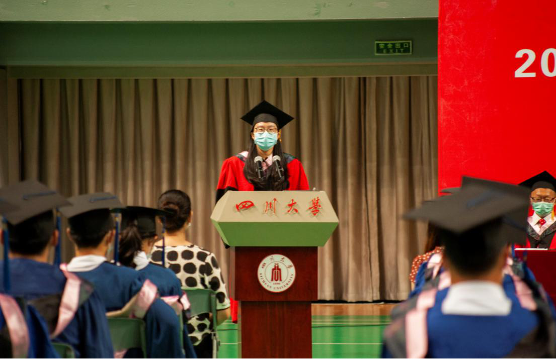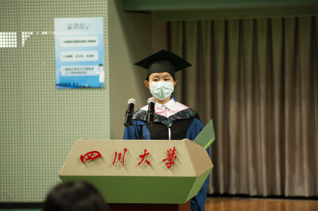 毕业生代表梁琼向母校、公司领导、老师们表达了诚挚的感谢和崇高的敬意。感谢老师们无微不至的关怀和敦敦教诲,梁琼同学分享了从看文献、写文献综述、到写出毕业论文经历的苦与甜。对公司表达了感恩,对老师表达了感谢,对同学表达了祝福,对未来表达了期许。