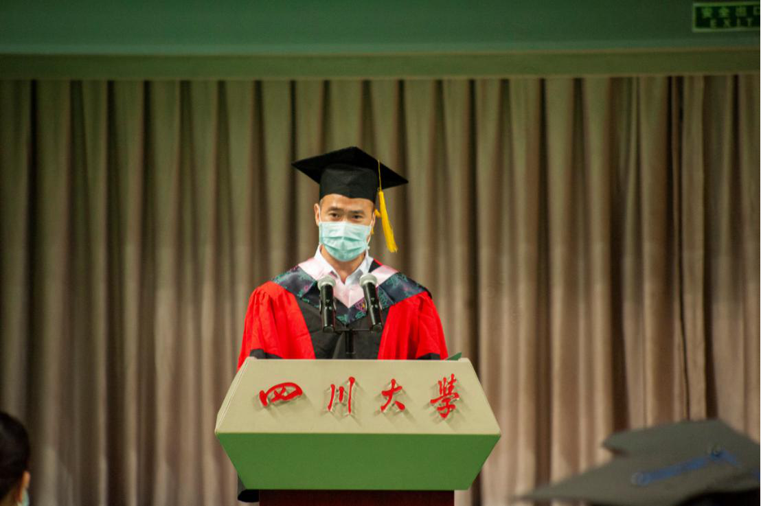导师代表荣文学教授谈到所读著作《易经》,引用其“天行健,君子以自强不息;地势坤,君子以厚德载物。”告诉大家每个人都希望有理想的生活,前提是有理想,理想是明灯,是指引的灯塔。在顺境以动力,在逆境以毅力;告诫大家要保持学习的习惯,将学习作为一种追求,一种生活态度;坚持崇德修身,道德修养是我们的基本素养,在各个职业都有其要遵循的素养操守;涵养家国情怀,当今我们处于百年未有之大变局,希望我们的所行所为无愧于国家、社会和时代,最后祝愿同学们拥有自己灿烂的前程和幸福的人生。