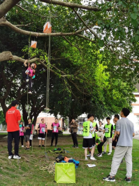 其中,勇夺泸定桥为庆祝建党一百年设置的专题活动,同学们在铺上木板(以海绵垫代替)一步步前进的过程中体会长征的艰苦。