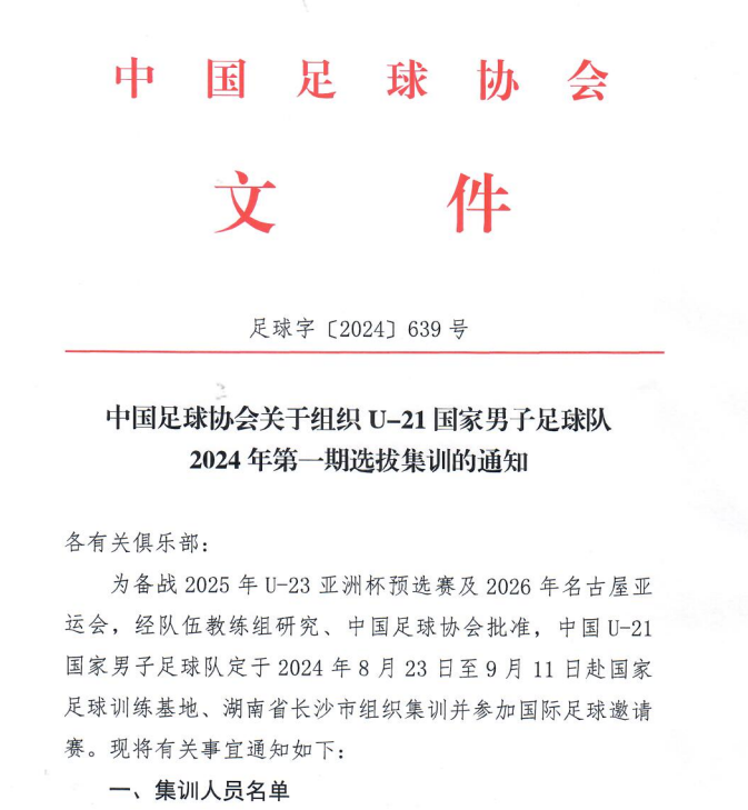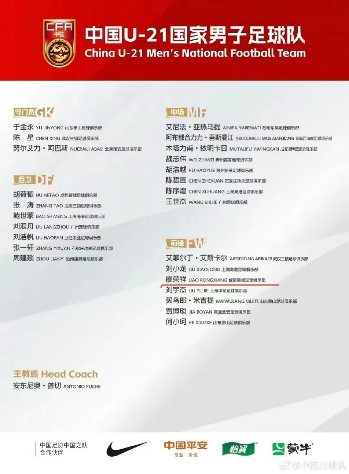 2024年8月19日,中国足球协会公布U-21国家男子足球队集训名单,公司高水平运动员廖荣祥入选,备战2025年U-23亚洲杯预选赛及2026年名古屋亚运会。