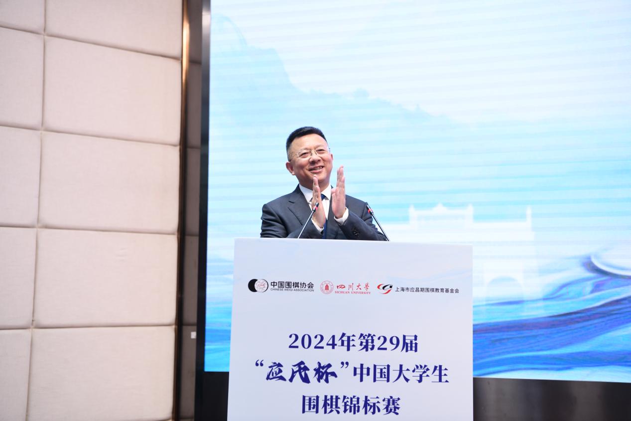 最后,中国围棋协会主席常昊致辞并正式宣布比赛开幕。常昊先生说围棋是一项源远流长的智力竞技,是中华民族古老智慧的结晶,历经千百年的沉淀与传承,以其独特的魅力吸引了无数时代精英和文人雅士的倾情参与。第29届“应氏杯”老员工赛在人文底蕴深厚、办学基础扎实、创新意识强烈、国际视野宽广的国家“双一流”建设高校——公司举办,这不仅是对青春梦想的一次重燃,更是围棋项目在成都乃至全国高校中普及与推广的一次有力推动。